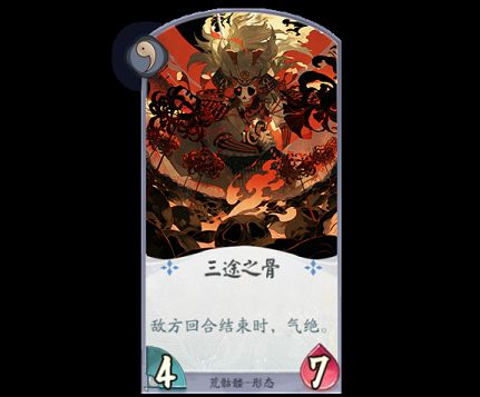 三途之骨能够在对局前期为荒骷髅提供优秀的身材,起到强势站场的作用。该形态在敌方回合结束时将使荒骷髅气绝,搭配荒骷髅气绝时可用的卡牌,荒骷髅仍然可以造成大量伤害。