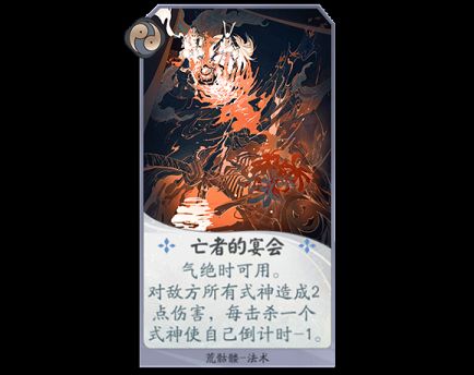 亡者的宴会造成的群体伤害能有效压低敌方全体式神的血量,可以提供群体补刀能力并加速荒骷髅的返场速度。