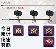 今日累计伤害奖励,今日内累计达1万点伤害即可领取一个奖励档次,最多可以累计3万点。