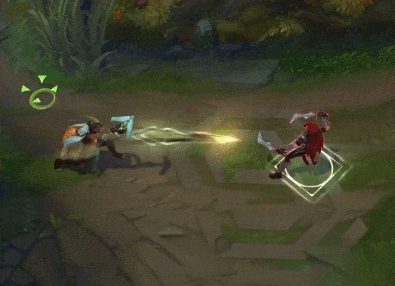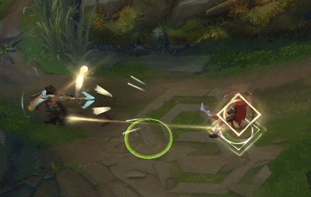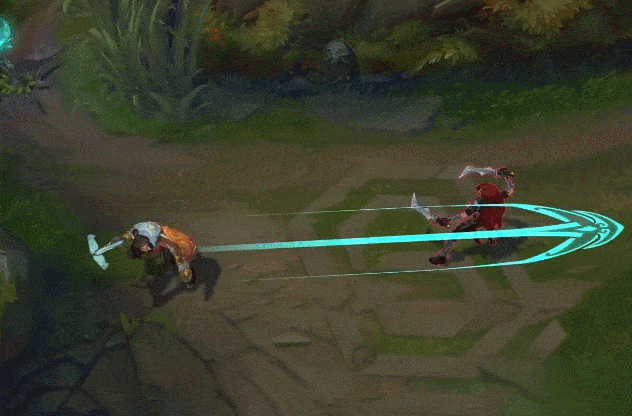 下图中除了Q技能回旋镖外,还包含了W技能【赴险夺人】的被动效果伪装状态,详见下方W技能特效。