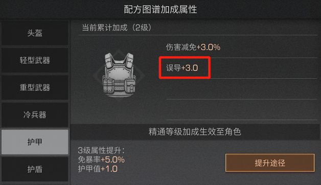 误导属性的来源有3种,分别为副武器全钢盾牌的属性继承、护甲自带的误导属性、以及护甲图谱的误导属性。