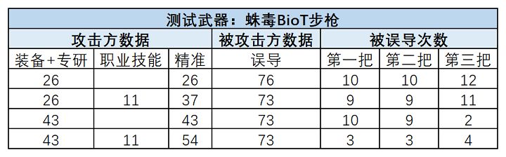 从上述结论中可以得知只要我方误导值与敌方精准值差值大于20,被误导的子弹数量就会增加。