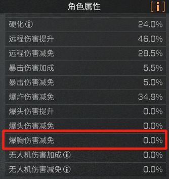角色面板-伤害属性中还有着“爆胸伤害减免”属性,爆胸伤害减免与爆头伤害减免属性类似,都能减少幸存者特定的部位所受到的伤害。
