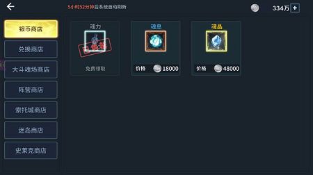 最简单粗暴的一个商店,只有三样东西售卖,每日免费领取的魂力千万不要错过。