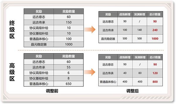 由于赛季系统奖励的加入,深渊与记忆战场的次数/结算奖励也将进行增加调整。