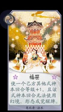 一张大后期的幻境牌,可以利用惠比寿和其他式神能提升式神等级的牌,让这张卡牌快速发挥作用。