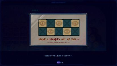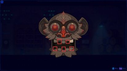 然后交互左边墙上的猴子面具,出现小游戏。这个游戏需要我们把猴子的牙齿按下,参照刚才看到的十字绣,把带叉的对应的牙齿按下去。