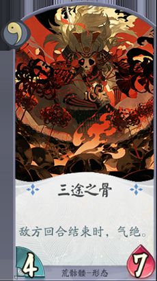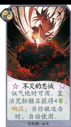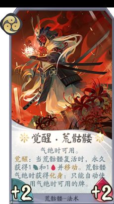 使荒骷髅在气绝获得「化身」,能使用气绝时可用的卡牌,加速荒骷髅的复活,另外荒骷髅在不断复活的过程中也会不断提升自身的面板,并移动回到战斗区,是荒骷髅的一张核心牌。