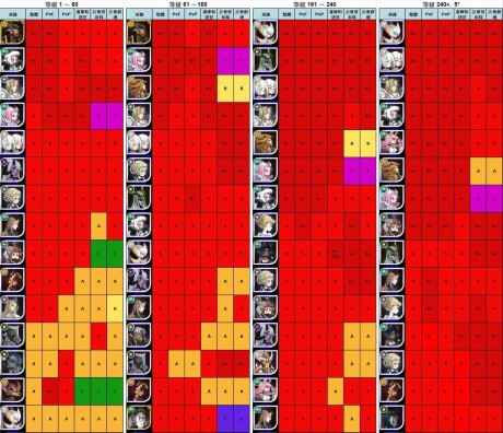 首先是各个阵营下英雄节奏榜(分为160~240满级两档)