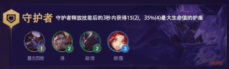 羁绊效果:护卫释放技能时,获得相当于最大生命值15%(2),35%(4)的护盾