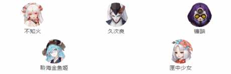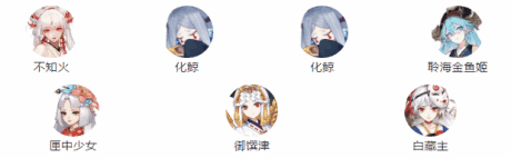 不知火,化鲸,化鲸,聆海金鱼姬,第五手可以选择匣中少女,蚌精御馔津,白藏主等式神。