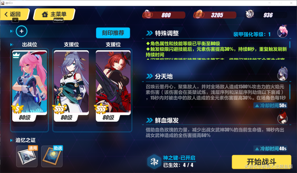 ①在选取了戒律的情况下,不要用鏖灭和开旭光2,不然会特别容易暴毙,尤其是开了旭光2的情况下,血量会慢慢降到1,在没有开浮生2的情况下,极其考验手部乘区