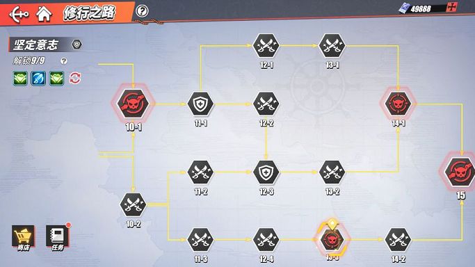 活动内容:参与修行之路玩法可以获得意志奖励和活动货币奖励。每日登录可获得10张入场券,通过盾形关卡可解锁特殊意志,获得相同意志可以增加意志等级,从而提升战斗效果。(意志属性全活动副本生效。)通关红色首领关卡可解锁强者玩法!