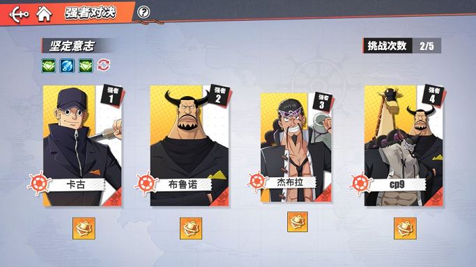 伴随着全新SS伙伴CP9罗布鲁兹的登场,主题活动“黑暗的正义”也同步开启。各位船长可以体验到全新的PVE玩法,兑换金果、高级召唤券、高级强化卡等丰厚的奖励~