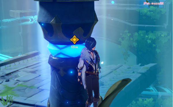 风龙废墟七天神像的位置,如下图,并不难找,但是我们到了那里也是没有办法打开的,有风墙封印,必须要完成主线任务才可以解锁。