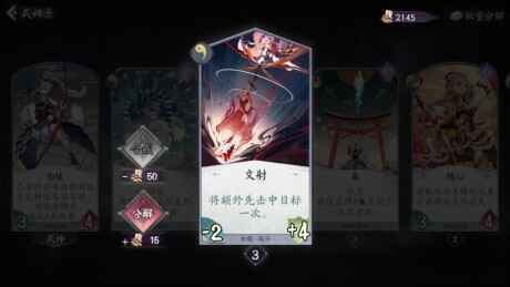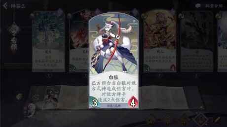 开局时尽量多地保留“文射”和“凤鸣”这两张卡牌,“文射”不仅能很大程度地提升白狼的生存能力,还能触发两次白狼的基础能力,配合“凤鸣”,能对敌方牌手造成很高的伤害。