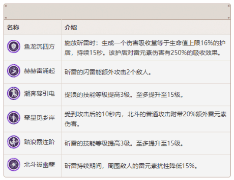 普攻倍率是双手剑里面最低的,4层命之座被动,被打之后普攻会附带20%额外雷元素伤害,打元素反应方便很多。