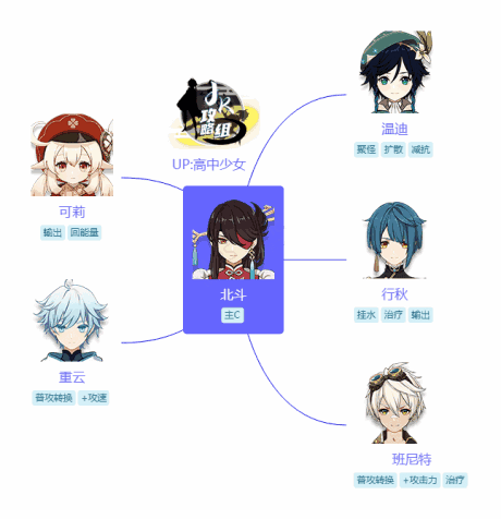 北斗4命普攻附带雷伤,可以选择一些普攻转换元素的角色,让北斗疯狂触发元素反应。