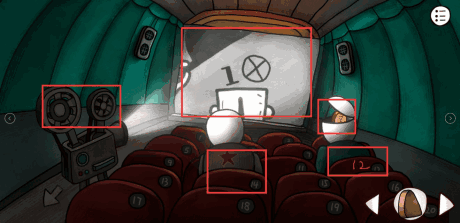 录像带放到放映机里 点右边人的头拿到金币 记住屏幕上出现的符号并且记好这两个人的座位号 星星14号 绿衣服14号