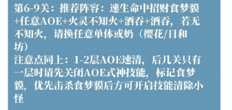 前两层AOE速清,第三层关闭AOE式神技能,标记食梦貘,优先击杀食梦貘后方可开启技能清小怪