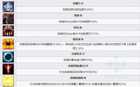 自身受到伤害时NP获得量提升(18%) + 除自身以外的己方全体<包括替补>弱化状态耐性下降【负面效果】(8%)