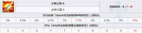 付与自身「Quick攻击时获得NP的状态」(3回合),付与「Arts攻击时获得暴击星的状态」(3回合)