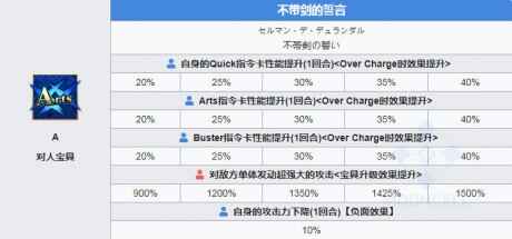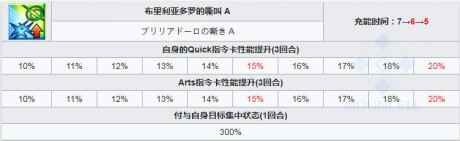 自身的Quick指令卡性能提升(3回合),Arts指令卡性能提升(3回合),付与自身目标集中状态(1回合)