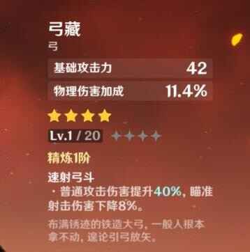 和西风猎弓相同,弓藏也是一把四星紫色装备。