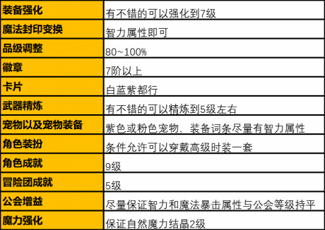 说到史诗装备,如果你脸很白获得了极佳的固定魔法封印属性(智力、属性强化、伤害增加),也就是毕业装备,你可以尝试进行品级调整和装备强化了。品级调整也不要追求完美,因为游戏才刚到中期,你还有大量的装备等待打造,我们尽量保证有80~100%的最上级品级就足矣,强化方面7级就足够了,因为7级之前强化失败是不会降低强化等级的,所以你会在不消耗大量金币和材料的情况下,快速强化到7级。