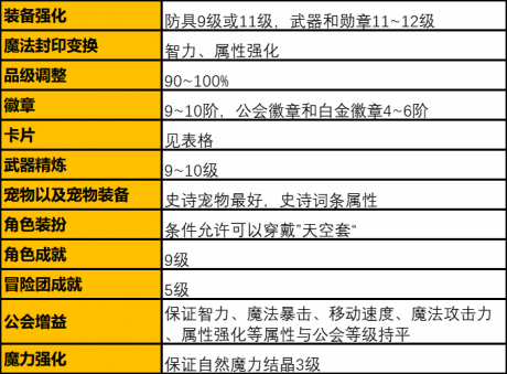 徽章是我们在初期和中期就开始培养的,我们在最终阶段保证自己的徽章等级有9阶以上,满阶的红色智力徽章可以为我们提升55点属性,全身可以打6个智力徽章,这就是330点智力,这种提升是巨大的,所以我们尽量越早的培养徽章越好,同样的公会徽章和白金徽章也要保证拥有4~6阶。