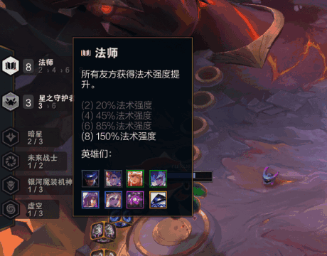 10.8版本新增八法师羁绊,二、四、六法师的效果也有小幅度的提升。泽拉斯法师体系中的五费卡大哥,给他一身装备,一炮秒一个并不是难事。