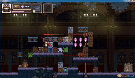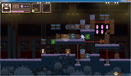 把标记箱子推到机关上关闭激光,收集宝石和钥匙并在图示位置留下两个幻象。开门进入门内世界。
