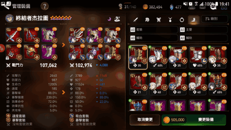 上图就是我来打GVG的对策杰拉图卡牌,专门对付水扇子以及dz的debuff队伍。通过快速使用三技能以及神器增加自身的生存率。除此之外还有其他的装配如下