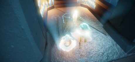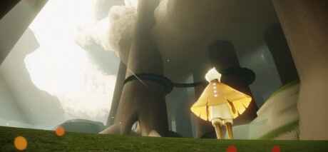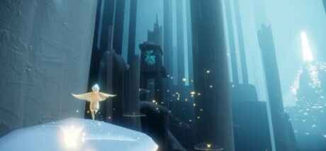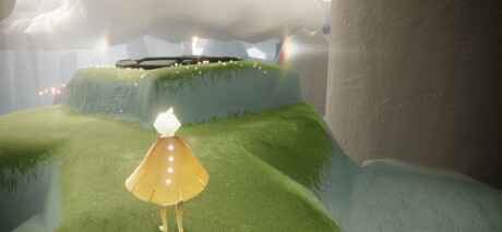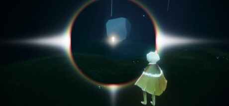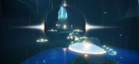 在图中类似管状物左侧某高塔顶部(图10.1),沿着左侧发光蘑菇一路飞上去(图10.2、图10.3),来到高塔顶部屏障处,效果如图10.4(隔着屏障可直接收集)