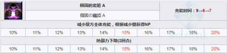减少敌方全体充能,根据减少量获得NP,防御力下降(3回合),技能3(灵基再临第3阶段开放)