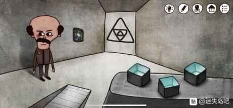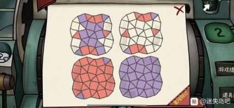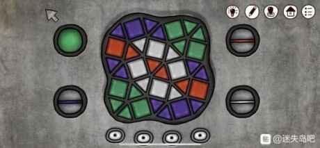 进入,点击左边墙壁上的黑格,进入一个小游戏,这个是随机的,四步内把色块变成同色系,这是一个事例的步骤图,可以研究一下