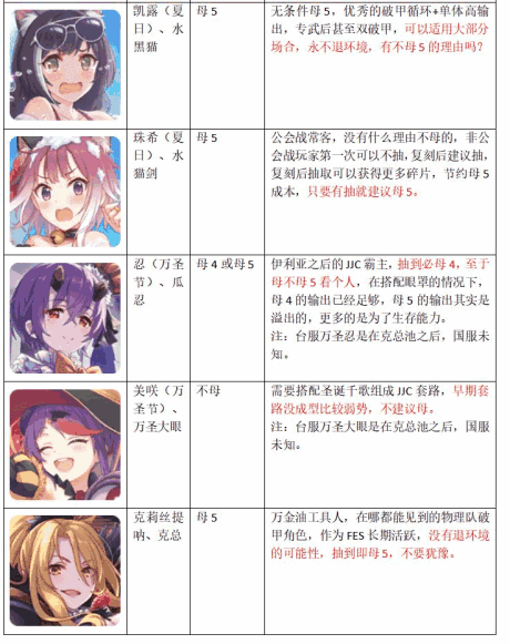 先说一下,开服半年4个人权(黑骑、伊利亚、水黑、克总)拿下来,加上活动产出,半年能有6k以上的母猪石,理论上要抽的人权角色可以全母5,但是实际上你要母的并不仅仅是这几个,所以需要取舍。