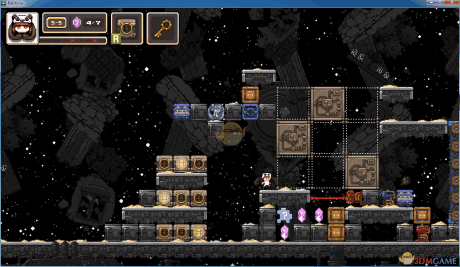 调整机械板位置(如图所示),跳到最上方把破碎的箱子推下。
