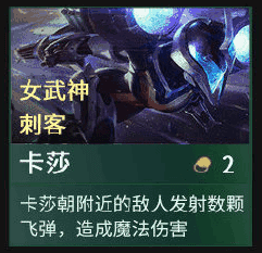 卡莎:2费最强单挂卡!有位置的话看见就拿!强烈推荐搭配离子火花!化身成无情的连胜机器!