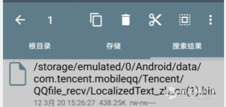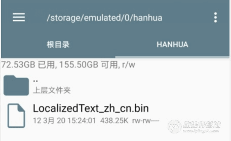 得到结果,就是你刚才下载到手机里的汉化文件,(这里因为我下载到手机里两次所以文件名自动加了(1),你们操作的时候确保文件名为最原始的状态不要有这样的(1)或其他字符)