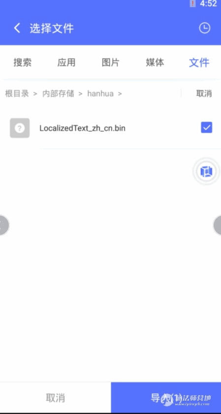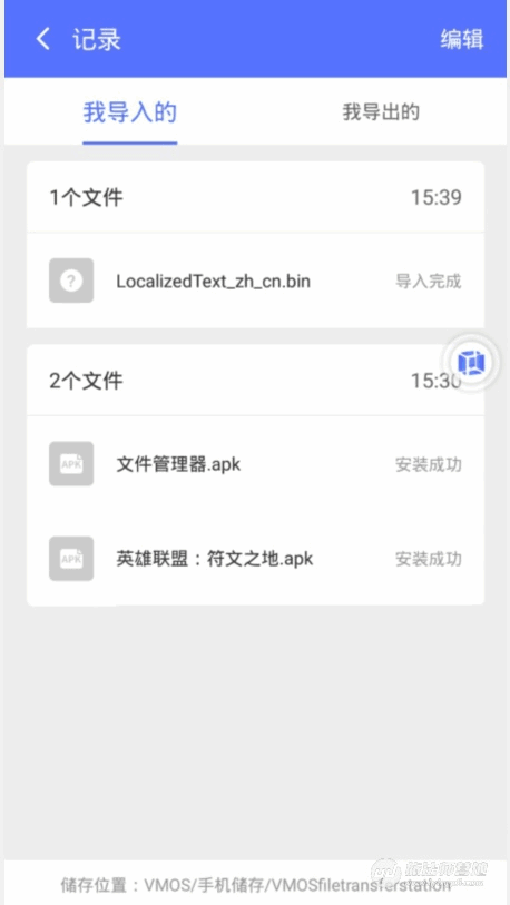 上图,导入后要记录文件的储存位置,基本上都一样,都是VMOS/手机储存(sdcard)/VMOSfiletransferstation