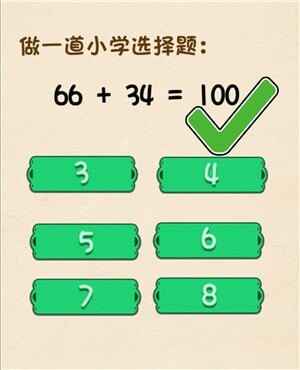 全民烧脑是一款奇特的有着多个关卡的休闲益智解谜手游,那么其中第100关做一道小学选择题答案是什么,下面一起来看看吧。