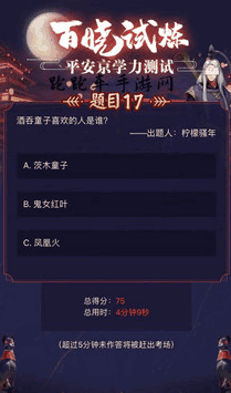 阴阳师酒吞童子喜欢的人是谁是百晓试炼平安京学力测试玩法,玩家们参与阴阳师知识问答即可获取丰厚奖励喔,那么酒吞童子喜欢的人是谁、阴阳师酒吞童子喜欢谁呢,大西洋软件园为大家带来介绍吧。