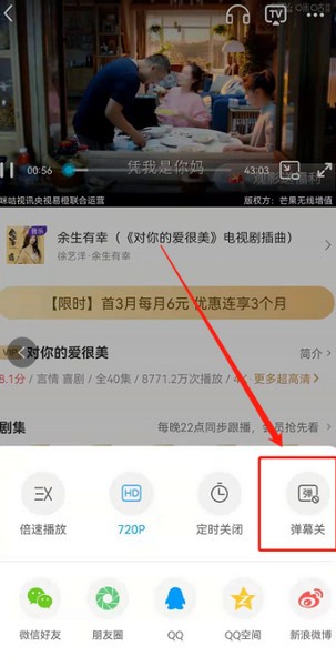 2、这时下方会弹出一些功能按钮,找到弹幕选项进行关闭即可。
