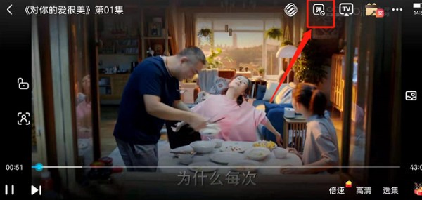3、如果是横屏播放状态,在有上方点击下图框中位置即可关闭弹幕。