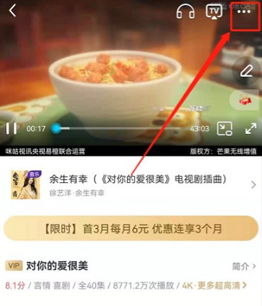 1、打开咪咕视频,选择自己感兴趣的影视作品进入观看,如果是竖屏状态下,大家点击右上角【...】。