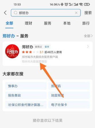 支付宝中搜索并打开【郑好办】。