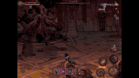 可以进行砸地攻击(这里要注意,残血会被秒),钩爪向前戳,震开人物且同精英女妖那样使用直线攻击,屏幕范围内随机2~4处地方,需要注意的是震开人物后自身动作会变得迅速且攻击也会得到提升(50%左右),新手打就还是绕后,不要和他刚正面,他转身后你就要注意了
