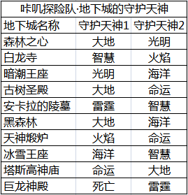 ·每个地下城每周有1个守护天神为队伍提供神恩与天神技能。
