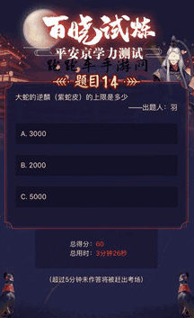 阴阳师大蛇的逆鳞紫蛇皮的上限是多少是百晓试炼平安京学力测试玩法,玩家们参与阴阳师知识问答即可获取丰厚奖励喔,那么大蛇的逆鳞紫蛇皮的上限是多少、阴阳师紫蛇皮上限多少呢,大西洋软件园为大家带来介绍吧。